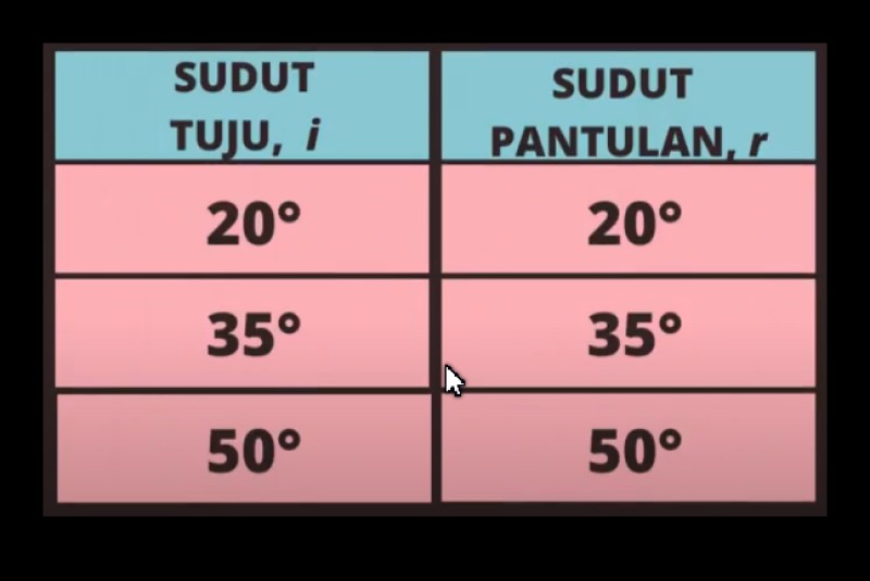 Hukum Pantulan : Sudut tuju, i SAMA dengan sudut pantulan, r
